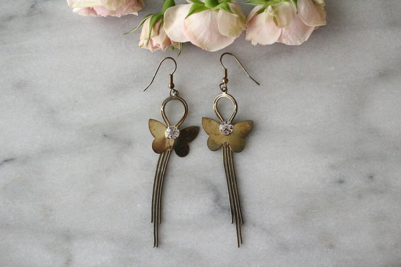 ヴィンテージ・ゴールドトーン・バタフライ・ダングル・イヤリング