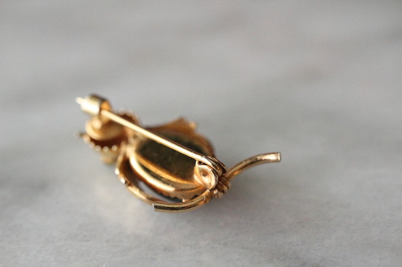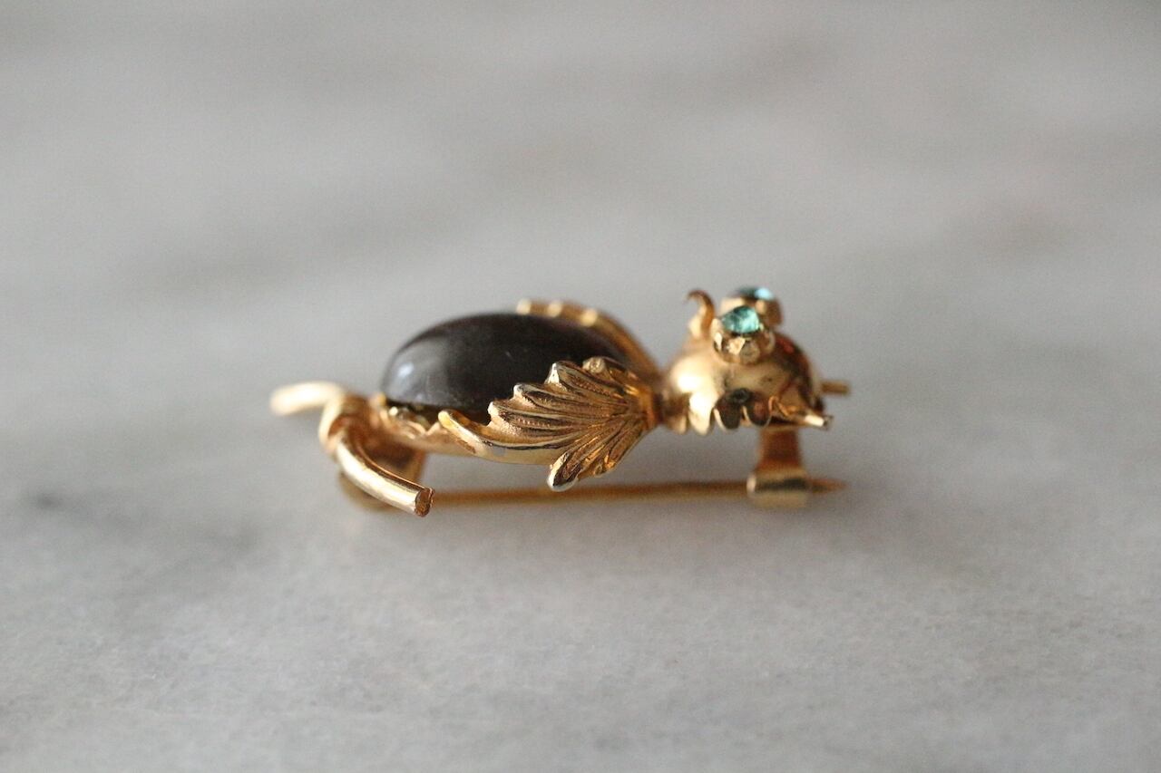 ※”Jerry Berry”はTrifariのアルフレッド・フィリップがアニマル・モチーフのコスチュームジュエリーのお腹部分にルーサイトを使用し、”Jelly Belly”(ゼリーのお腹)シリーズとして販売したコレクティブルなピン・ブローチやイヤリングです。デザイン性に優れ、希少価値の高いものとされています。