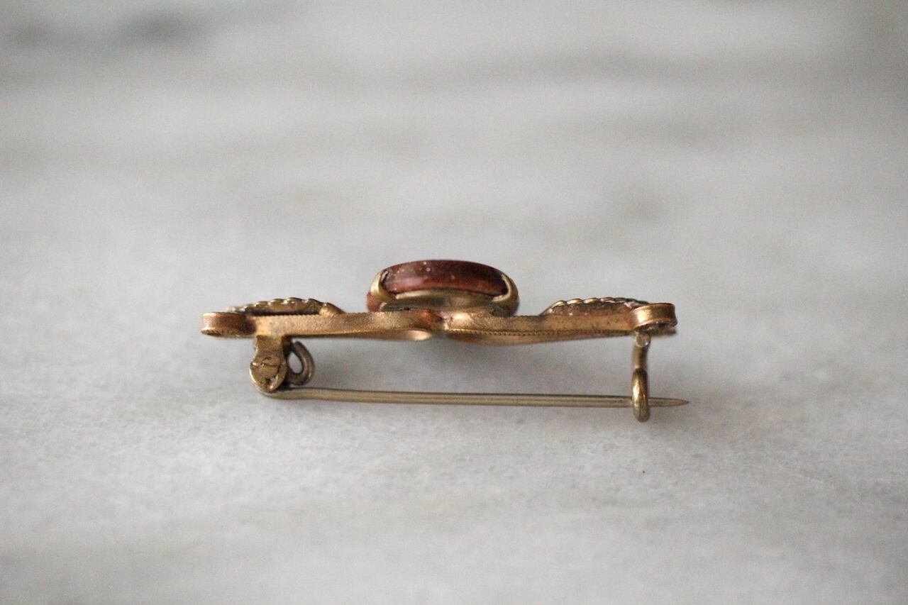 アンティーク・19c・ヴィクトリアン・ゴールドストーン・カボション・リーフ・デザイン・ブローチ