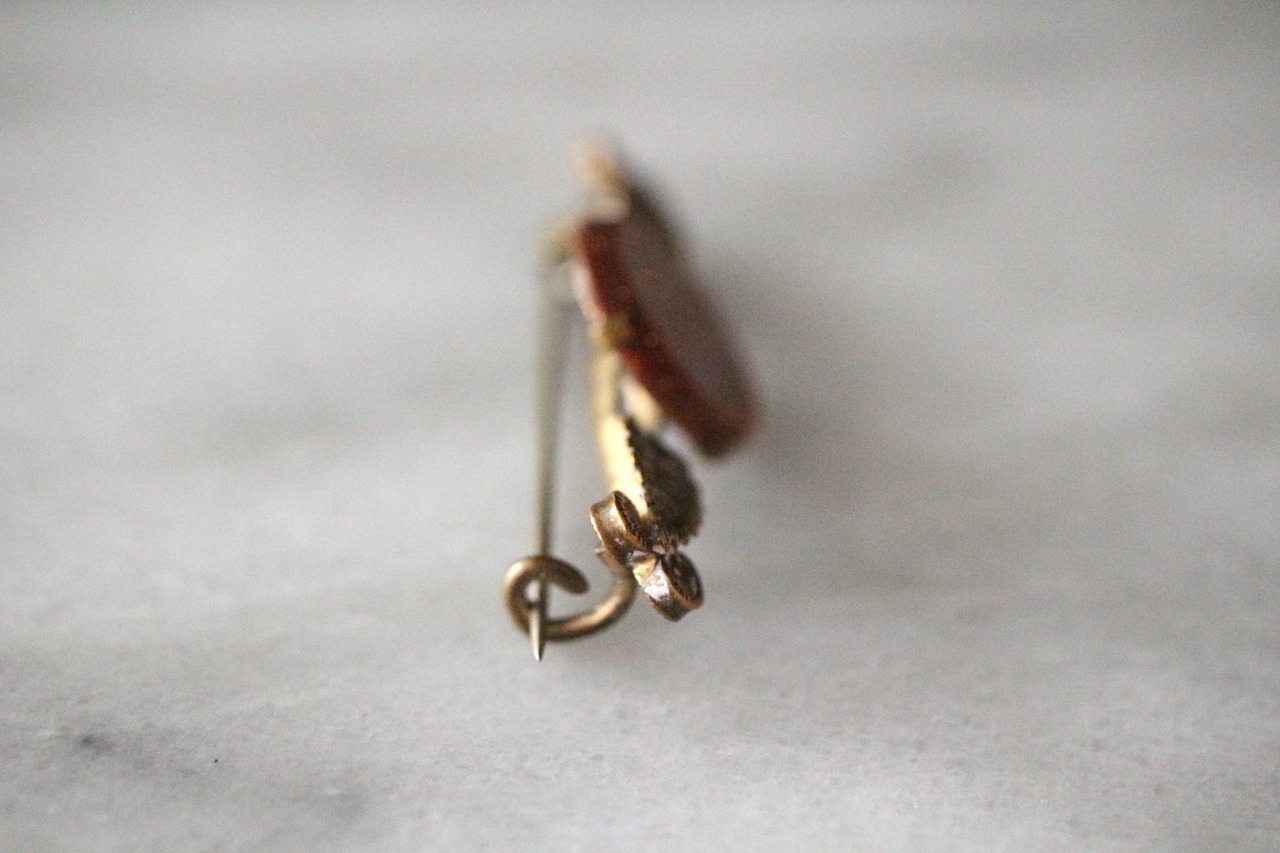 19 世紀、ビクトリア朝時代に生産された、ゴールド・ストーン・カボション・リーフ・デザイン・ブローチです