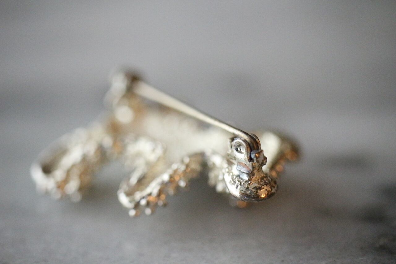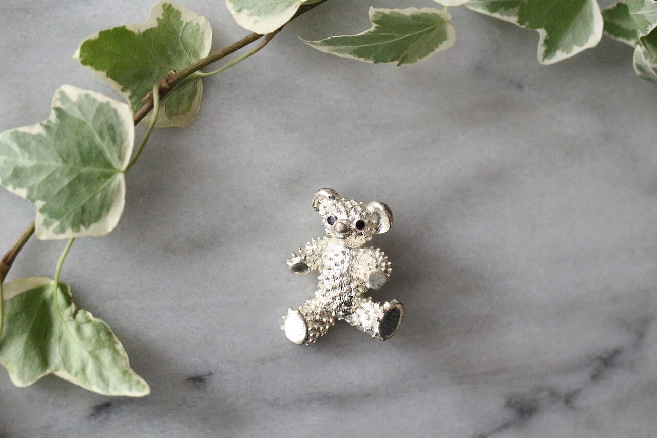 黒い瞳が可愛いヴィンテージ・シルバートーン・テディベア・ブローチ。