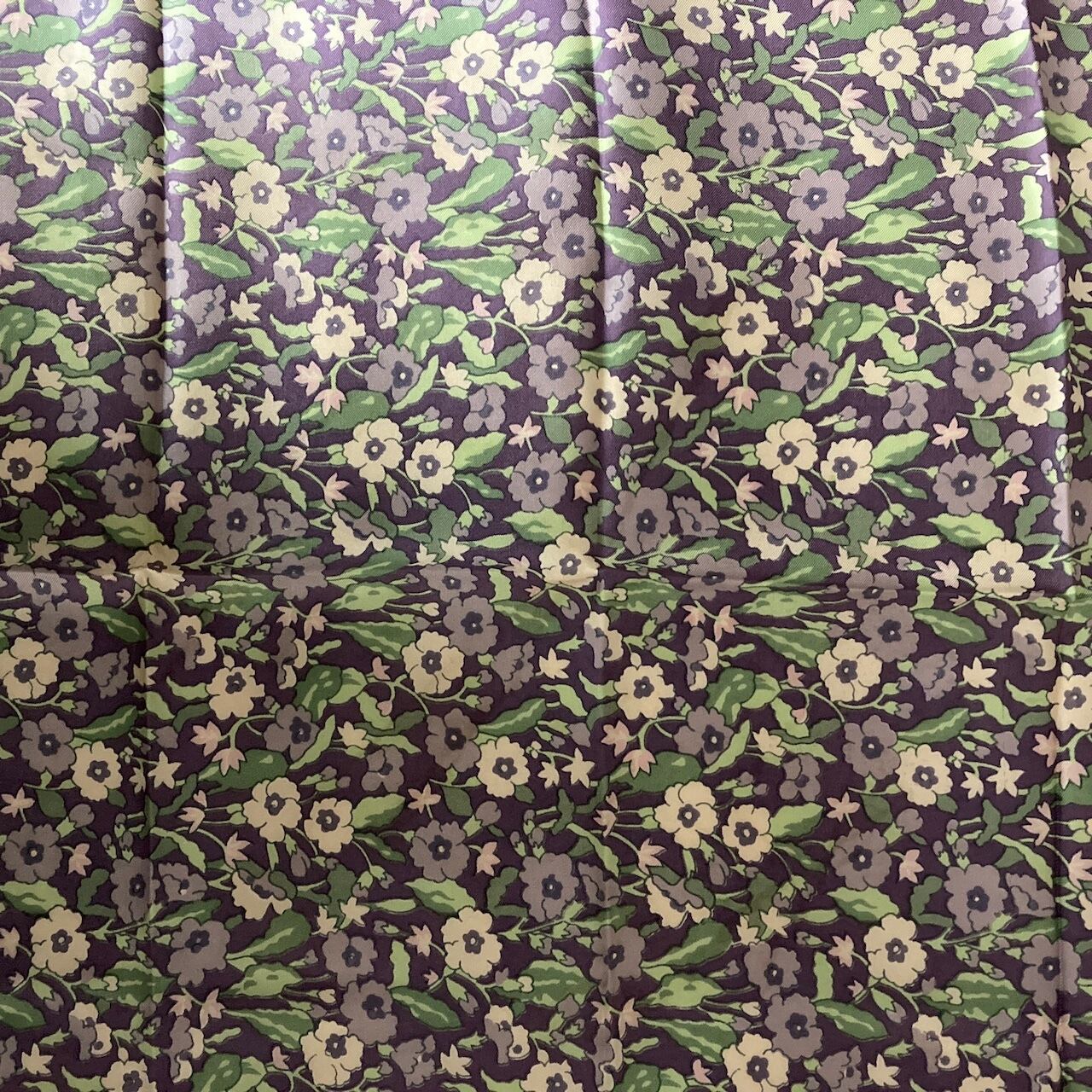 ヴィンテージ・Liberty Of London・パープル&アイボリー・グリーン・フローラル・スカーフ・シルク・ツイル