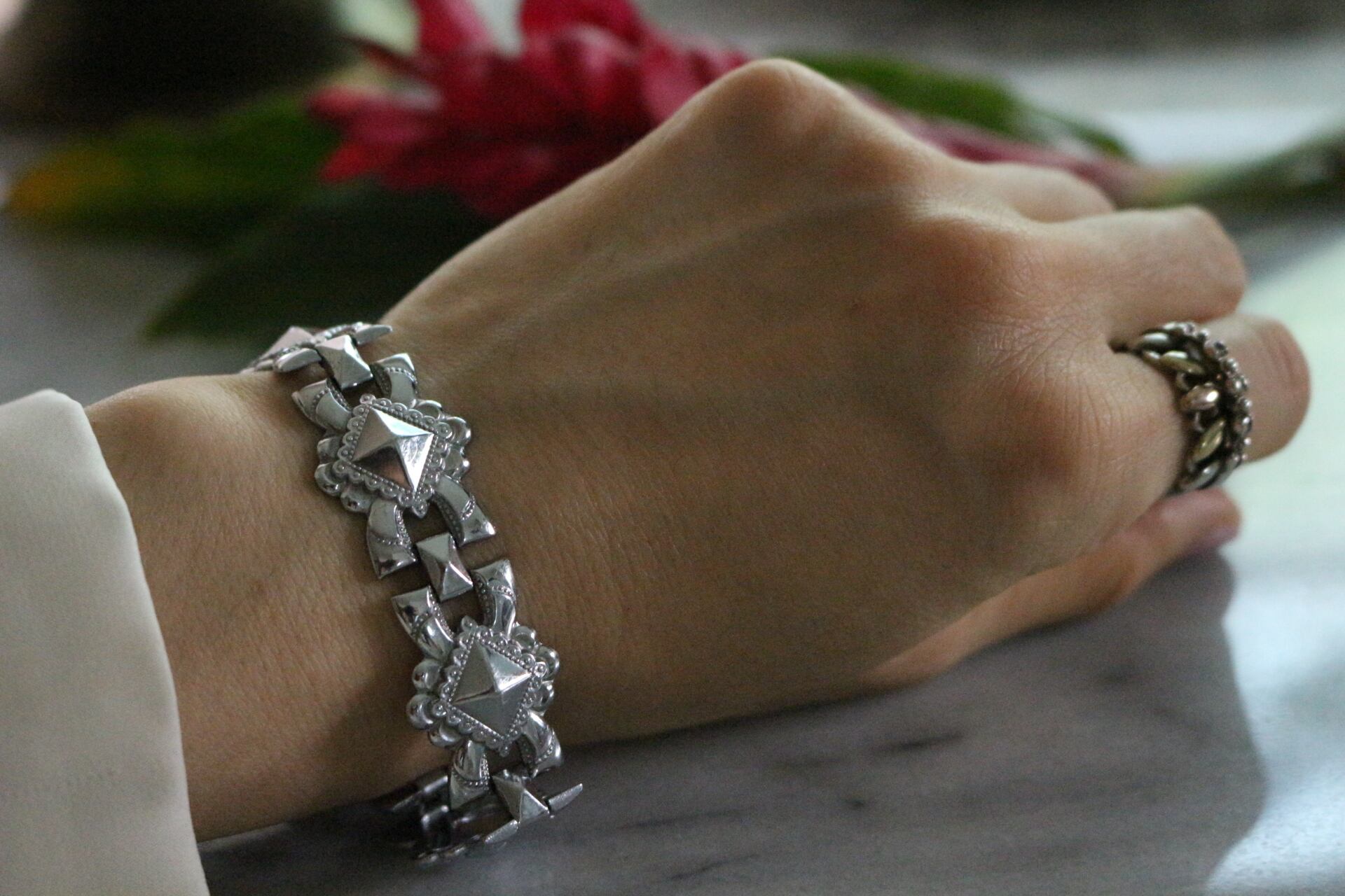 とても古いアイテムですが、それを感じさせない奇抜なデザインと、良質なメタル、クラスプの頑丈さについてもレベルが高いです。